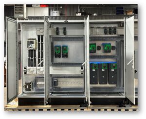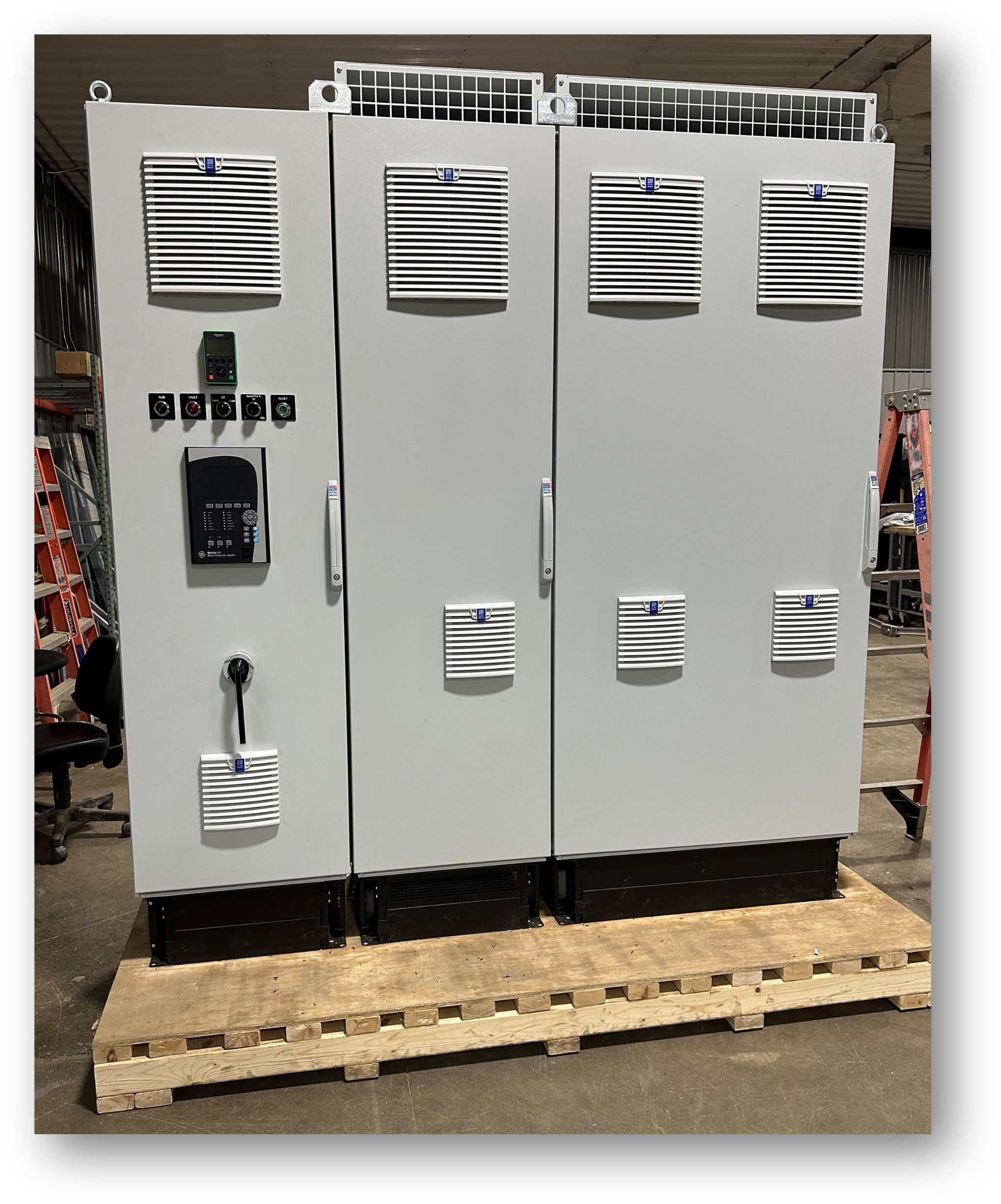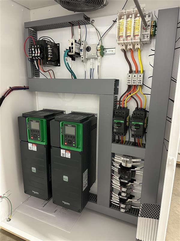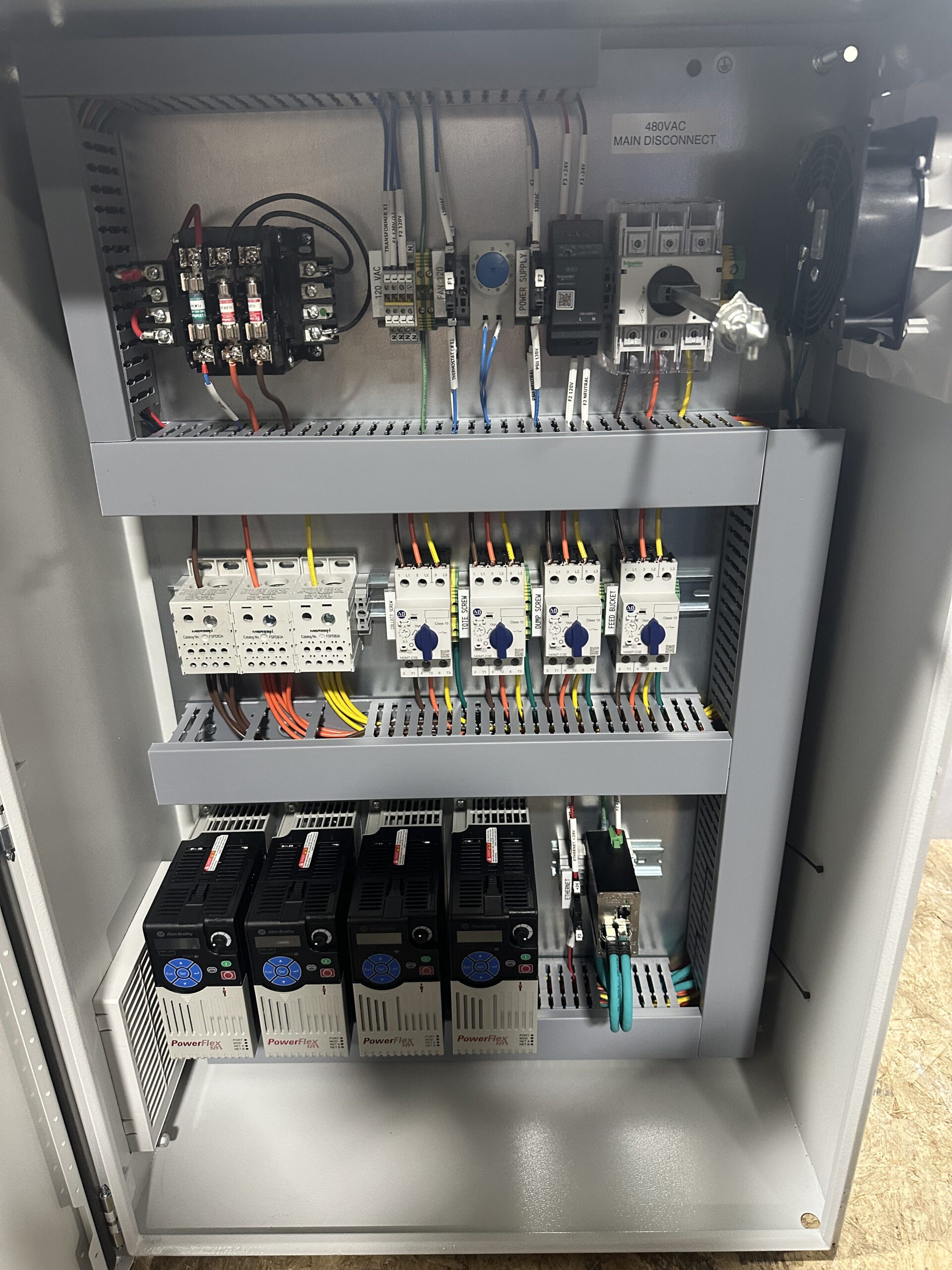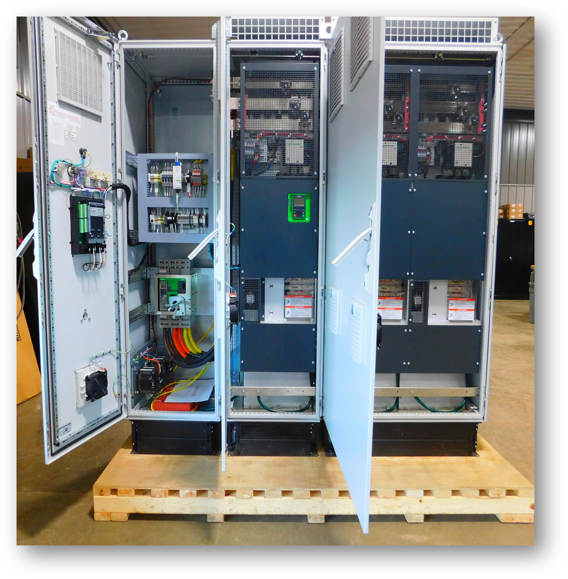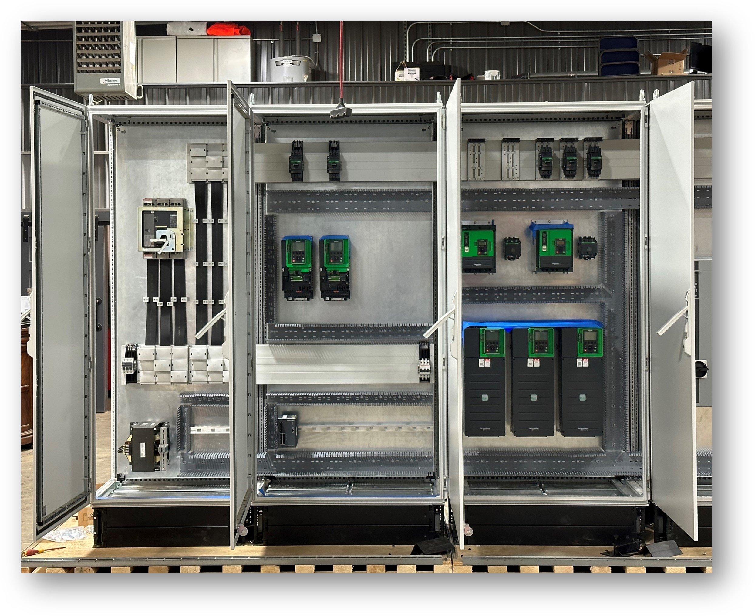 We design and build custom VFD solutions up to 1200HP, including multi-drive enclosures that control multiple motors from a single panel. Our capabilities include full PLC, HMI, and SCADA integration, networked drives using industrial communication protocols, and complete motor protection and power distribution.